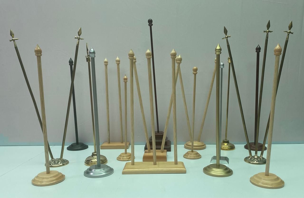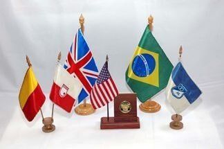 - Banderas para interiores, exteriores, vehículos, escritorios, y películas. Escudos metálicos de todos los tamaños de solapa, Heraldos, placas para inventario, placas conmemorativas, kit de base astas y punta.